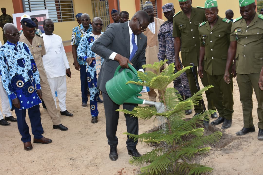 Le président du comité national d’organisation des hommages, monsieur Awate Hodabalo, arrosant ici son plant d’arbre mis en terre