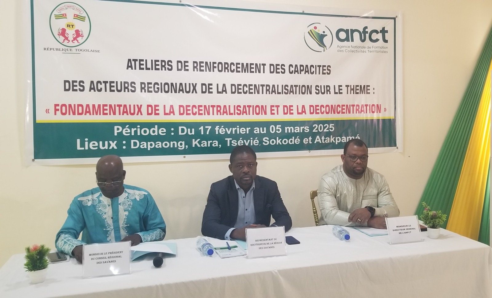 Une trentaine d’acteurs régionaux administrateurs et personnels techniques de la décentralisation de la région des Savanes ont participé les 17 et 18 février 2025 à l’hôtel Léota Yendoubé à Dapaong, chef-lieu de la préfecture de Tône, à une session de formation sur les fondamentaux de la décentralisation et de la déconcentration. Organisée sur fonds propres du ministère de l’administration territoriale, de la décentralisation et de la chefferie coutumière, cette rencontre de Dapaong est la première étape d’une série de cinq (05) sessions de formation à raison de deux (02) jours par session et pour chacune des cinq (05) régions que compte le Togo.