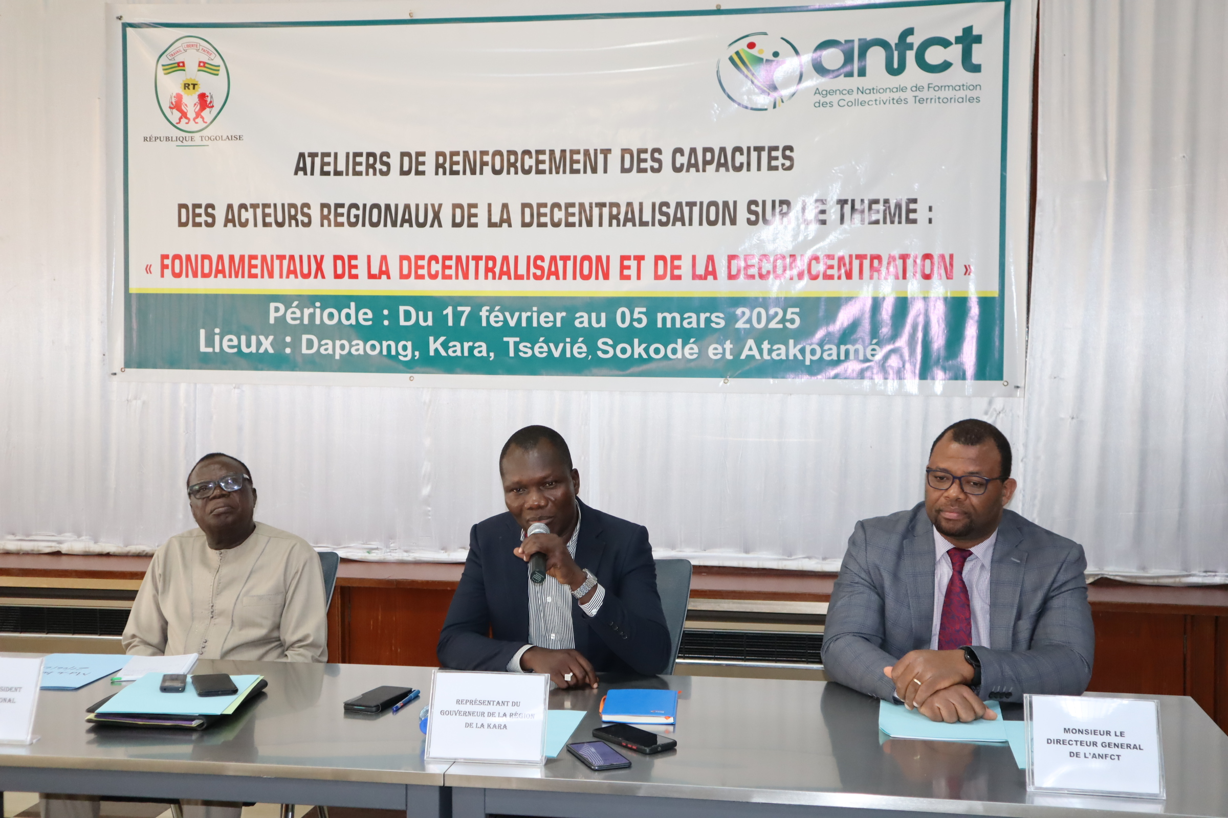 En ouvrant la session de formation de Kara au nom du gouverneur de la région, le secrétaire général du gouvernorat de la Kara, monsieur Gnigbangou Gountibote, a rendu un hommage mérité au président de la République, Son Excellence Faure Essozimna Gnassingbé, pour avoir mis en place l’Agence ANFCT destinée, a-t-il dit, ‘’à accompagner le processus de la décentralisation dont le deuxième niveau a atteint son effectivité avec l’élection et l’installation des conseils régionaux’’. Après avoir reconnu que cette session de formation apporte à eux les bénéficiaires des compétences pratiques et des outils stratégiques pour mieux appréhender leurs responsabilités et contribuer à la réussite de la décentralisation et à la déconcentration au Togo, monsieur Gnigbangou a convié les uns et les autres à un partage des expériences pour enrichir les discussions et tirer meilleur profit de la rencontre.