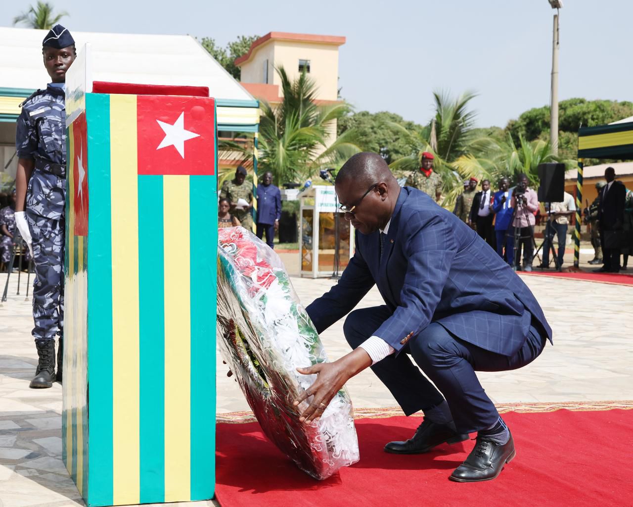 De hautes autorités politiques, militaires et administratives, ainsi que les familles des militaires honorés, ont pris part à cette cérémonie, venues témoigner de la gratitude de la Nation envers ces femmes et ces hommes engagés au service de la patrie. À cette occasion, le ministre de l’Administration territoriale, de la Gouvernance locale et des Affaires coutumières, le Colonel Awaté Hodabalo, a procédé au dépôt de gerbes de fleurs en hommage aux soldats tombés lors des opérations de lutte contre le terrorisme dans la région des Savanes, saluant leur sacrifice ultime pour la défense du territoire national.