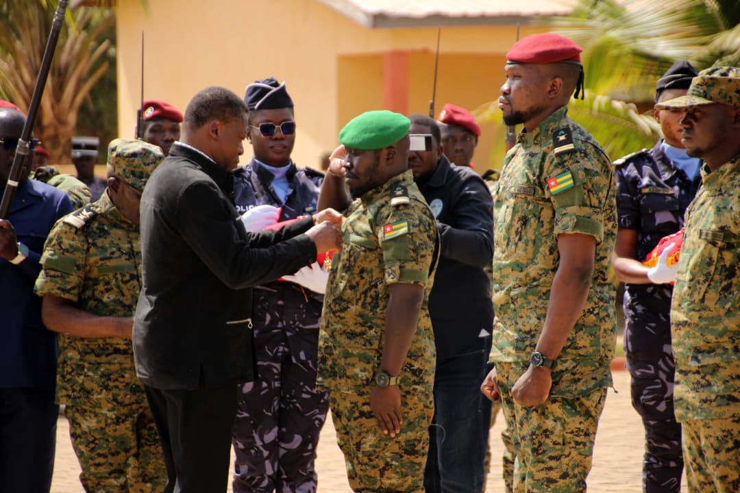 De hautes autorités politiques, militaires et administratives, ainsi que les familles des militaires honorés, ont pris part à cette cérémonie, venues témoigner de la gratitude de la Nation envers ces femmes et ces hommes engagés au service de la patrie. À cette occasion, le ministre de l’Administration territoriale, de la Gouvernance locale et des Affaires coutumières, le Colonel Awaté Hodabalo, a procédé au dépôt de gerbes de fleurs en hommage aux soldats tombés lors des opérations de lutte contre le terrorisme dans la région des Savanes, saluant leur sacrifice ultime pour la défense du territoire national.