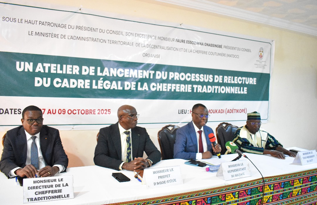 Le processus de la relecture du cadre légal de la chefferie traditionnelle au Togo a été officiellement lancé le mardi 07 octobre 2025 à l’hôtel Amoukadi à Adétikopé dans la préfecture d’Agoè-Nyivé, au cours d’un atelier technique.