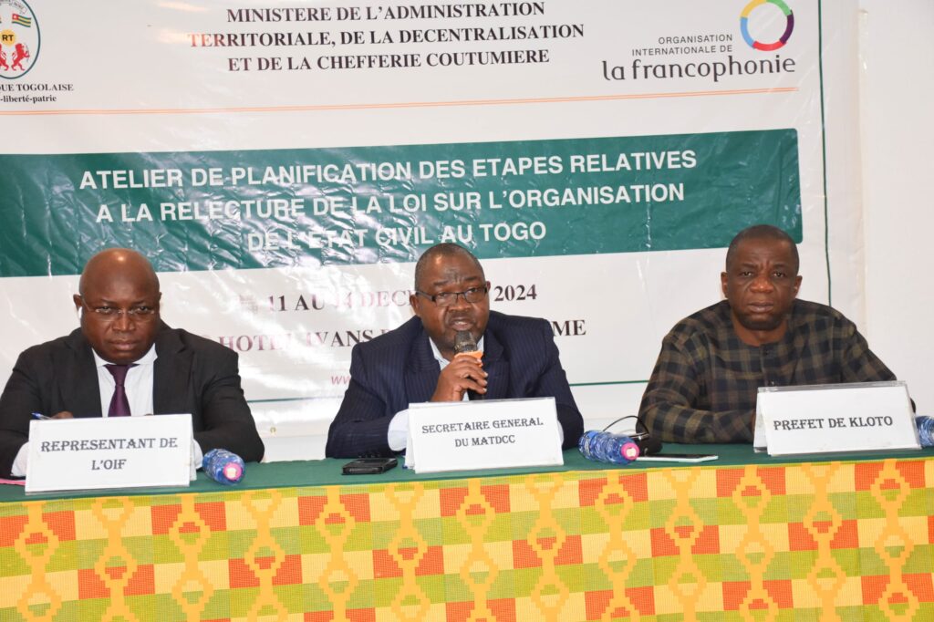 Depuis 2009, le système d’état civil au Togo est régi par la loi n°2009-011 du 11 juin 2009 relative à l’organisation de l’état civil au Togo ainsi que les textes règlementaires adaptés à l’interopérabilité, a établi un cadre juridique pour l’enregistrement des faits d’état civil. Cependant, son application a révélé des insuffisances limitant aujourd’hui son efficacité. Pour y remédier, le ministère de l’administration territoriale, de la décentralisation et de la chefferie coutumière (MATDCC) à travers sa direction technique en charge de l’administration territoriale et des frontières (DATF), a organisé un atelier sur la relecture de la loi, du 22 au 25 janvier 2024 à Kpalimé, qui a permis de faire des propositions d’amendements de forme et de fond sur la loi. Ces propositions d’amendements rangées dans un tableau appellent toutes les parties prenantes du système d’état civil à un travail laborieux, afin de pouvoir à terme revisiter le texte existant pour son amélioration. D’où la nécessité d’un atelier de planification des étapes relatives à la relecture de la loi sur l’organisation de l’état civil au Togo, suivant des instructions du ministre de l’administration territoriale, de la décentralisation et de la chefferie coutumière, le Colonel Awaté Hodabalo. Cette initiative du ministère s’inscrit dans le cadre du processus de réforme de l’état civil au Togo destiné à terme à rapprocher des citoyens, l’administration publique en charge des faits d’état civil pour une parfaite jouissance de leurs droits. Elle a bénéficié du soutien financier de l’Organisation internationale de la Francophonie (OIF).