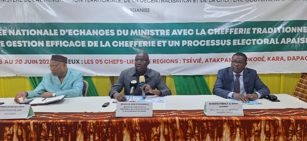 ‘’Le 17 juillet 2025, le peuple togolais ira aux urnes dans le cadre des élections municipales en vue de l’élection des conseillers municipaux. Les périodes électorales sont souvent des moments où la passion prend le dessus sur la raison. C’est également des moments de tension, d’intoxication, d’agitation sous diverses formes et de manipulation surtout de la jeunesse’’, a déclaré en substance le ministre Awaté Hodabalo de l’administration territoriale, de la décentralisation et de la chefferie coutumière, à l’occasion du cérémonial officiel du coup d’envoi de sa tournée nationale d’échanges avec la chefferie traditionnelle pour une gestion efficace de la chefferie et un processus électoral apaisé, initiée et placée sous le haut patronage du président du Conseil, Son Excellence Faure Essozimna Gnassingbé. Avant de poursuivre ses propos en s’interrogeant en ces termes, je cite : ‘’En ces périodes sensibles des élections, quel rôle doit jouer le chef traditionnel dans sa communauté en sa qualité de garant de la paix, de la sécurité et de la cohésion sociale ?’’ ; fin de citation. Une interrogation qui en dit bien et dont la réponse appropriée se justifie ainsi par cette heureuse initiative en passe de sensibiliser et d’outiller de connaissances pratiques, dès lundi 16 juin au vendredi 20 juin 2025, à travers les cinq (05) chefs-lieux des régions du pays notamment Dapaong pour la région des Savanes, Kara pour la région de la Kara, Sokodé pour la région Centrale, Atakpamé pour la région des Plateaux et Tsévié pour la région Maritime, les chefs traditionnels sur le rôle qui est le leur à jouer, la gestion efficace de la chefferie traditionnelle dont ceux-ci devront-ils s’en approprier, et la contribution de la chefferie traditionnelle que les garants de nos us et coutumes devront-ils s’obliger à faire valoir pour un processus électoral apaisé en vue de l’heureux aboutissement du scrutin municipal prévu pour le 17 juillet 2025 au Togo.
